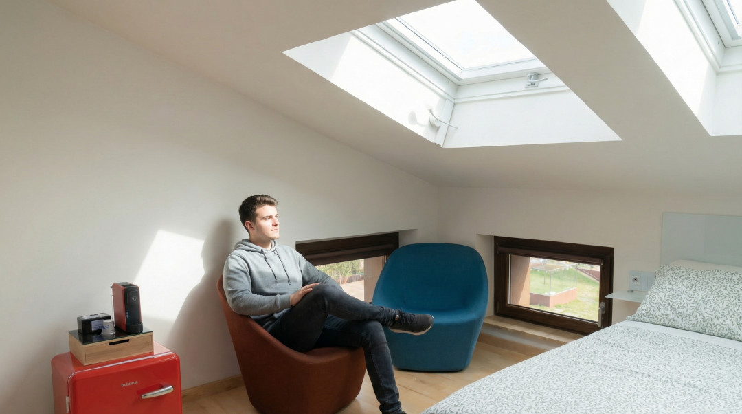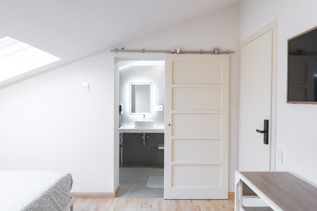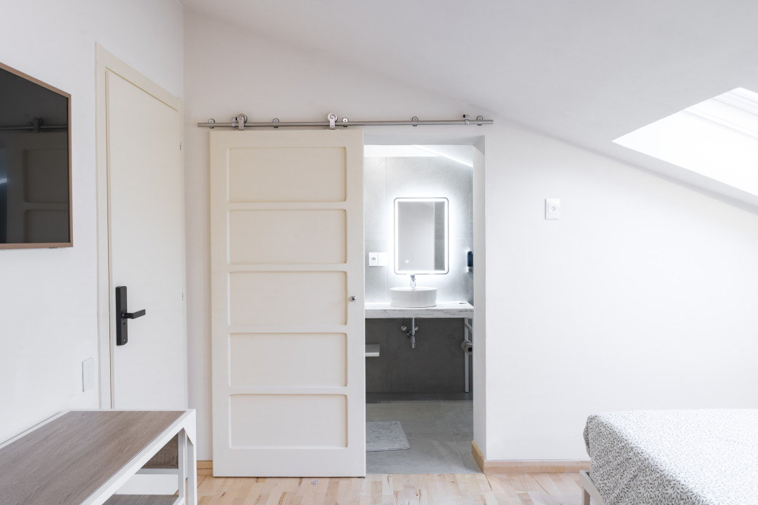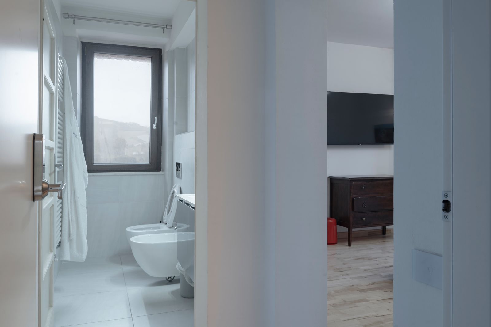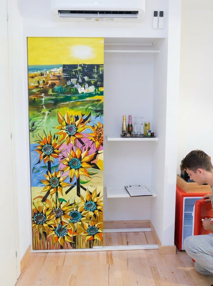 Sottotetto spiovente con lucernari che donano luce naturale e un atmosfera intima. Dotata di letto matrimoniale e tavolo con due sedie per cenare comodamente in camera. Il comfort è assicurato da aria condizionata, frigobar, cassaforte e armadio a muro con ante impreziosite dall'opera originale 'I girasoli' di Marco Franchini. La tecnologia domotica controlla illuminazione, condizionatori. TV Samsung tipo quadro arte. Esclusiva mini spa interna include sauna a legna privata per un'esperienza di relax unica. Accesso sicuro con porte ad apertura tramite codice, impronta o tessera.