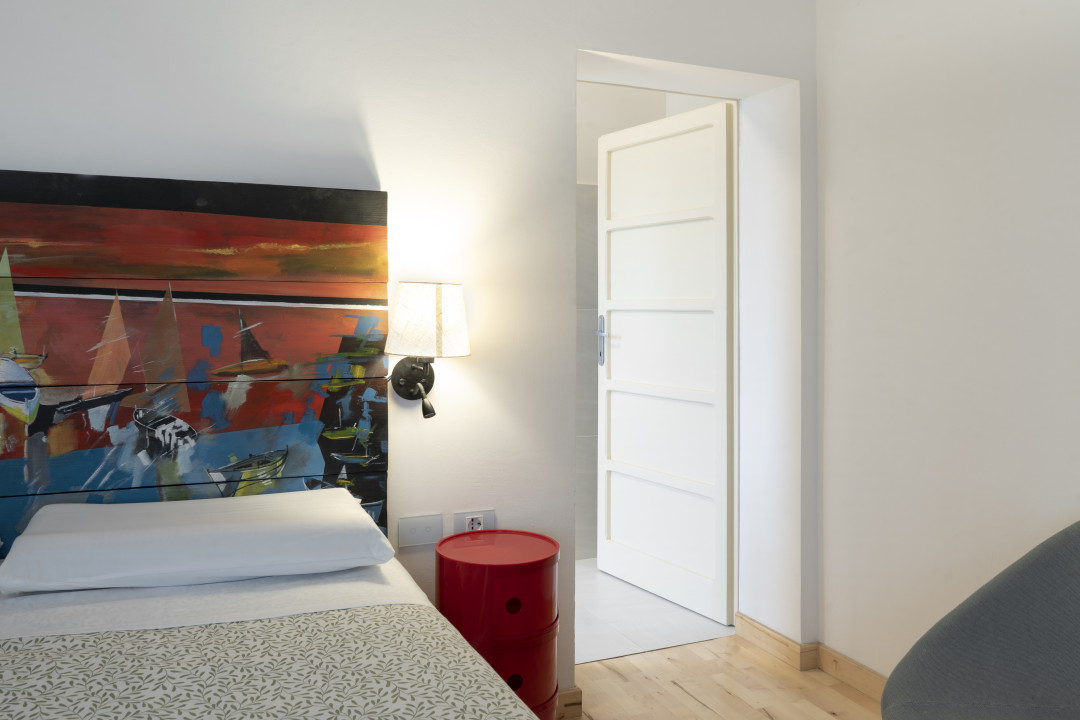 Family Room, ospita fino a 4 persone con un letto matrimoniale e un divano letto utilizzabile come letto singolo. Arredata con opere originali di Marco Franchini che raffigurano il mare, offre frigobar, cassaforte, aria condizionata e smart TV. Le porte si aprono tramite codice, impronta o tessera per maggiore sicurezza. Comoda anche la presenza di un tavolo con quattro sedie per pranzi o cene in camera. Completa l’esperienza la macchina da caffè con caffè e tisane disponibili gratuitamente.